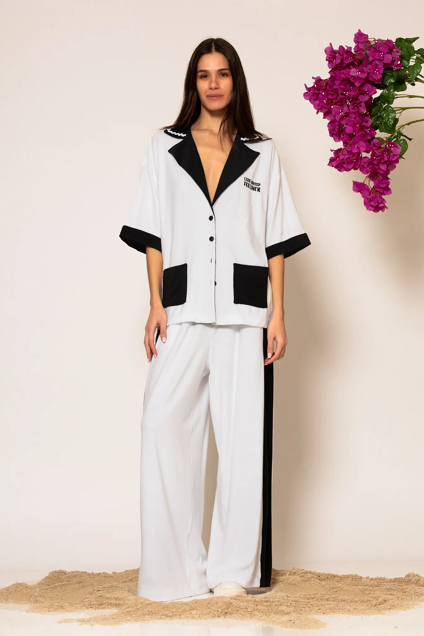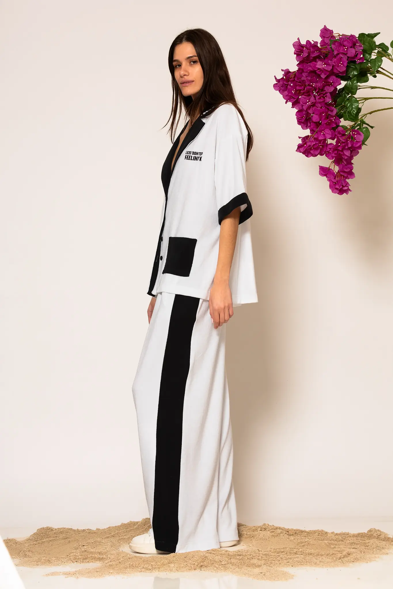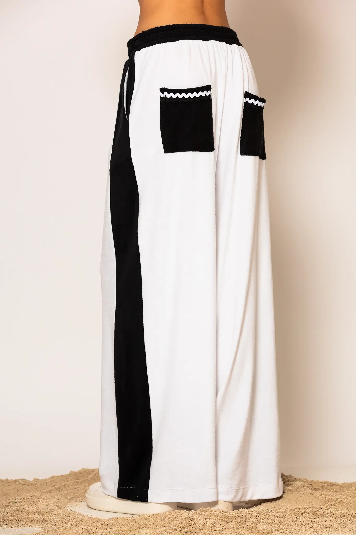 Elevate your casual style with the Cotton-blend side striped terry pants. Soft fabric, side pockets, and a chic look await your wardrobe!