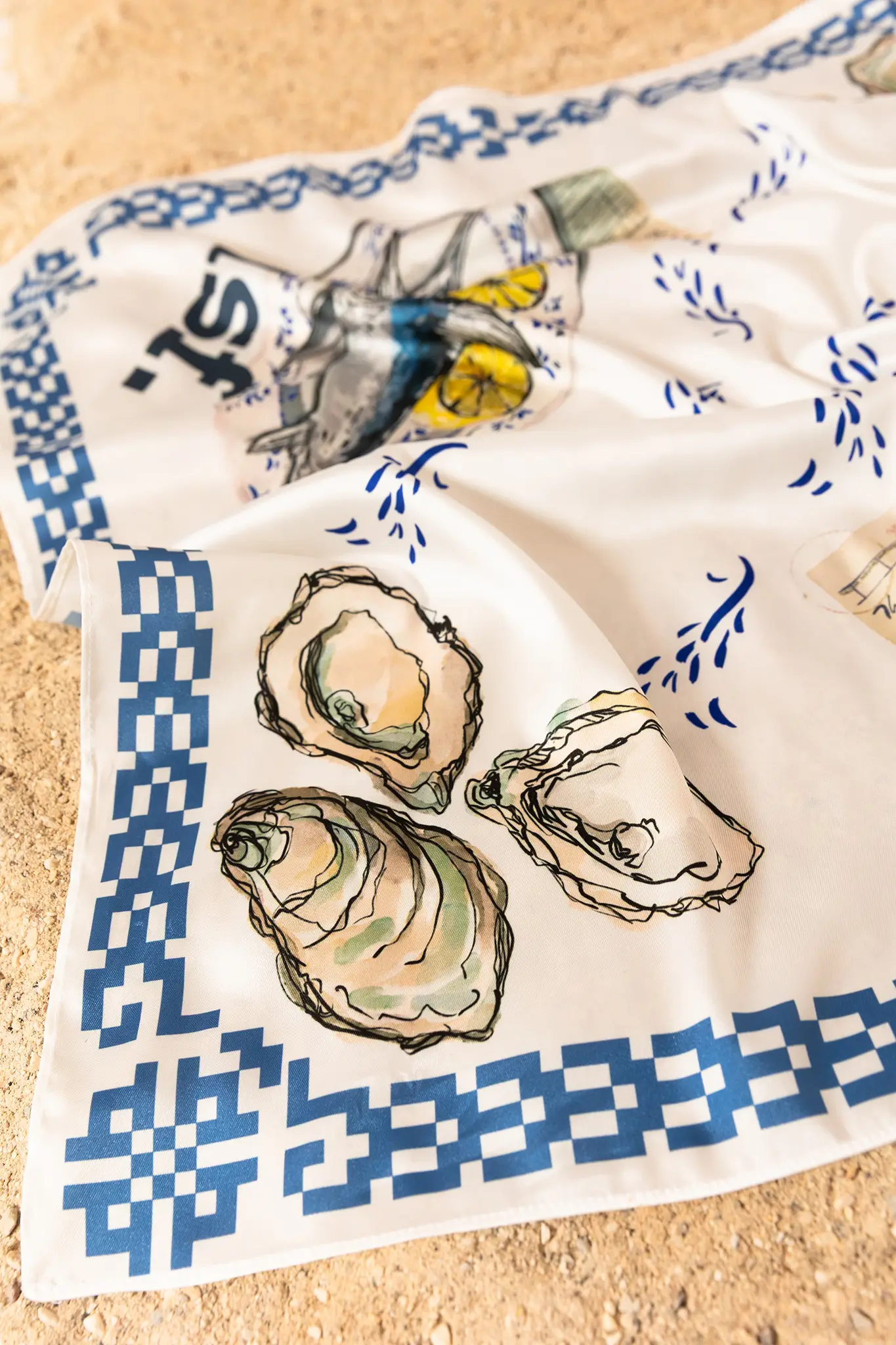 A unique scarf crafted from luxurious satin featuring a illustration print that adds a touch of elegance and style to any outfit. Its soft texture and colorful print make it the perfect accessory for your hair, neck, bag, or even worn as a delicate belt or a strapless top for a sophisticated resort look.