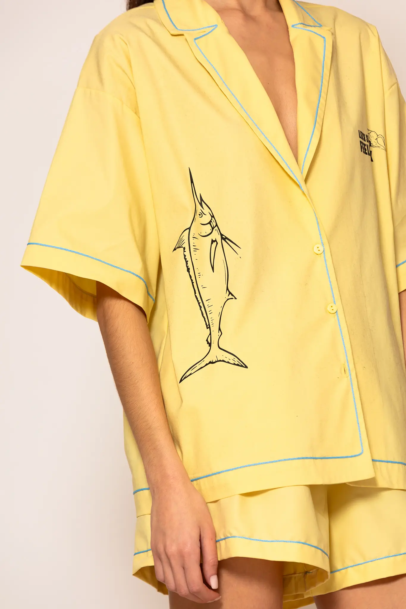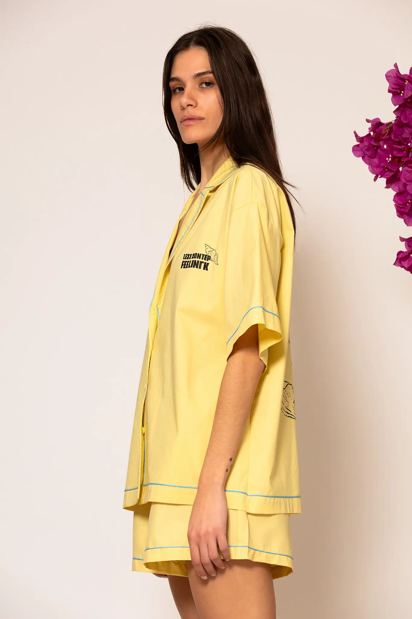 Oversized shirt crafted from cotton poplin. This piece is designed with a comfortable loose fit. The logo embroidery at front as the unique illustrations inspired for Greece summer transform it into a unique versatile and breathable garment that will accompany you on your serene coastal walks and upscale summer retreats.